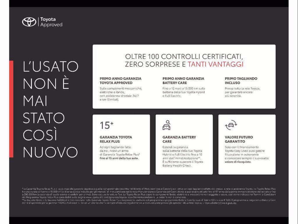Si prega di contattare la Concessionaria ed accertarsi dell'esatta ubicazione della vettura prima di recarsi sul posto Promo -1000€ e prossimo tagliando incluso con finanziamento TCM a tasso agevolato. Possibilità di finanziamento personalizzato con rata fissa e costante anche con copertura assicurativa su: FURTO, INCENDIO, RAPINA, EVENTI NATURALI(GRANDINE), ATTI VANDALICI, COLLISIONE CON VEICOLI NON ASSICURATI E CRISTALLI. PROMO LEGATA A OFFERTA FINANZIARIA